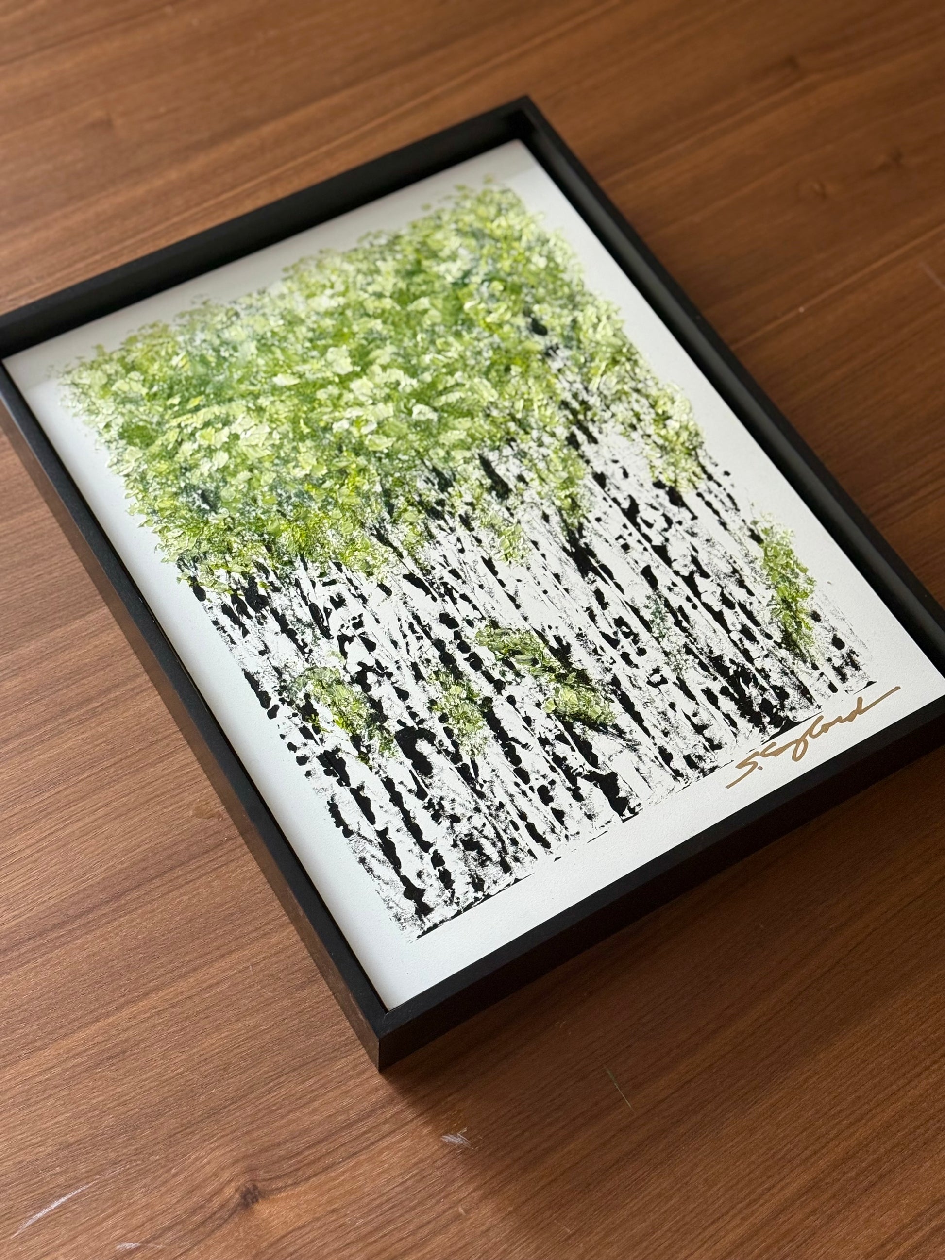 Deep set in a sleek black light weight frame. Frame is 11x13" big.