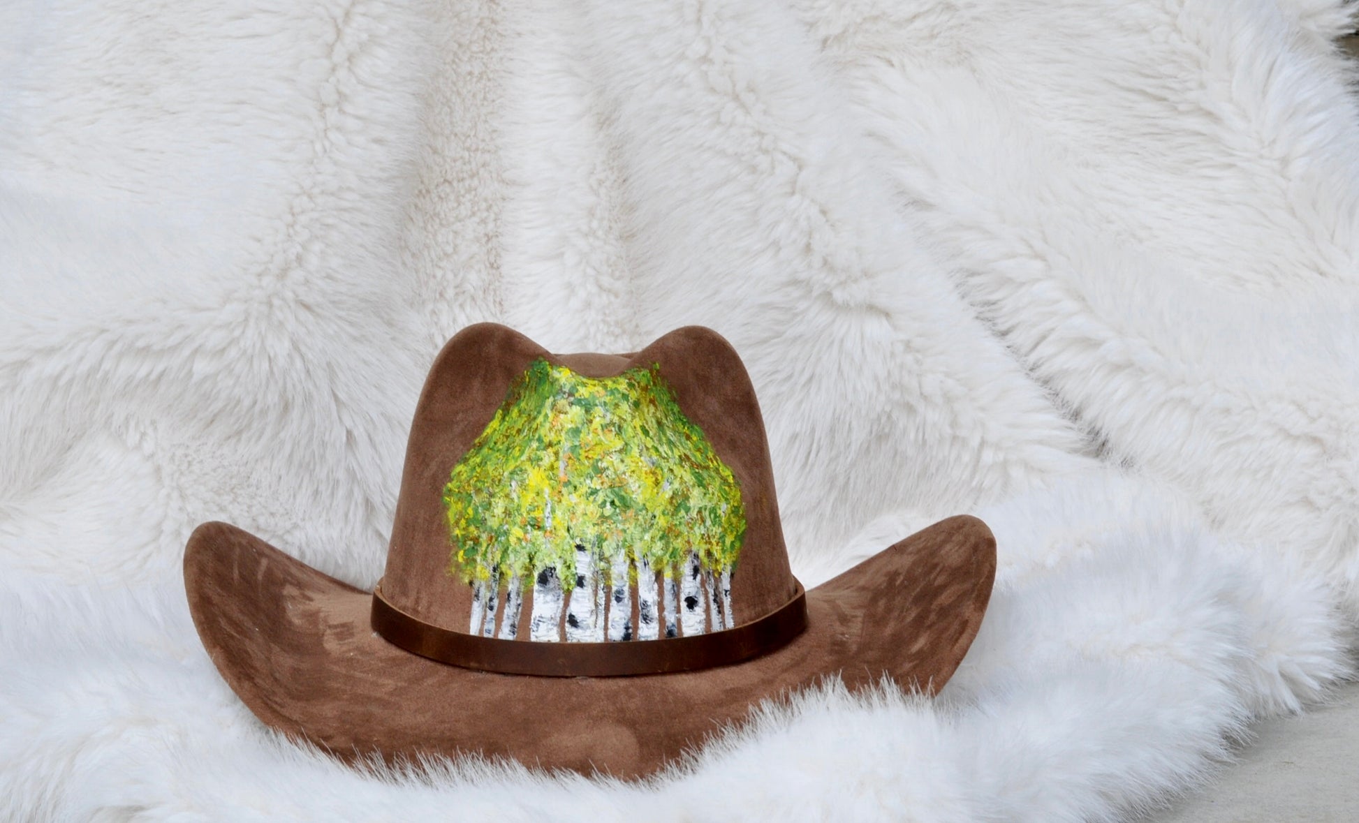 Wearable art - brown vegan suede cowgirl/cowboy hat