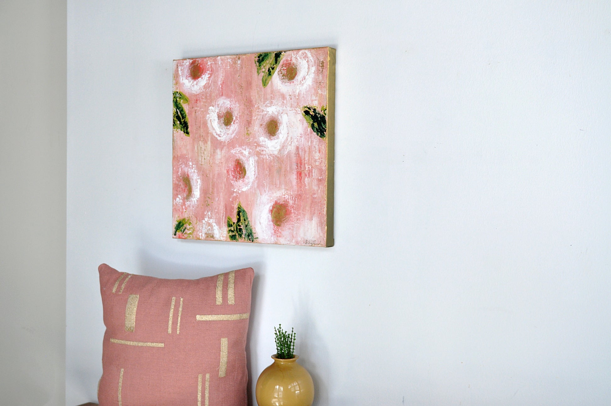 subtle and simple. Mixed media art pained on gallery wrapped canvas with the sides painted grey.